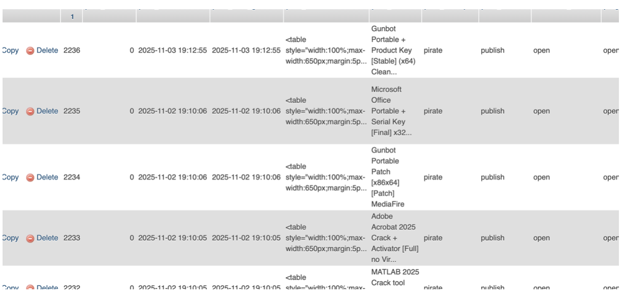 post_excerpt = 'pirate') --- which lines up with the mass post creation we were seeing.